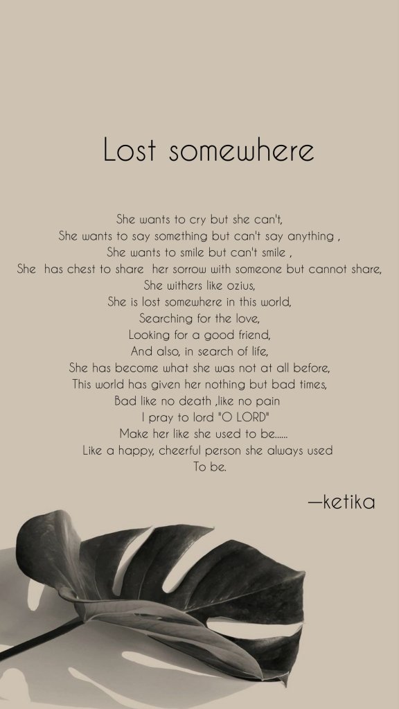 Lost somewhere… Posted byketikasnghAugust 20, 2023August 20, 2023Posted inUncategorized Share this: Click to share on X (Opens in new window) X Click to share on Facebook (Opens in new window) Facebook Like Loading... Related Published by ketikasngh just a normal person View more posts